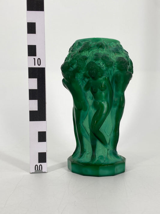 Art Deco Vase von Hoffmann & Schlevogt aus grünem Malachitglas aus der Kollektion Ingrid