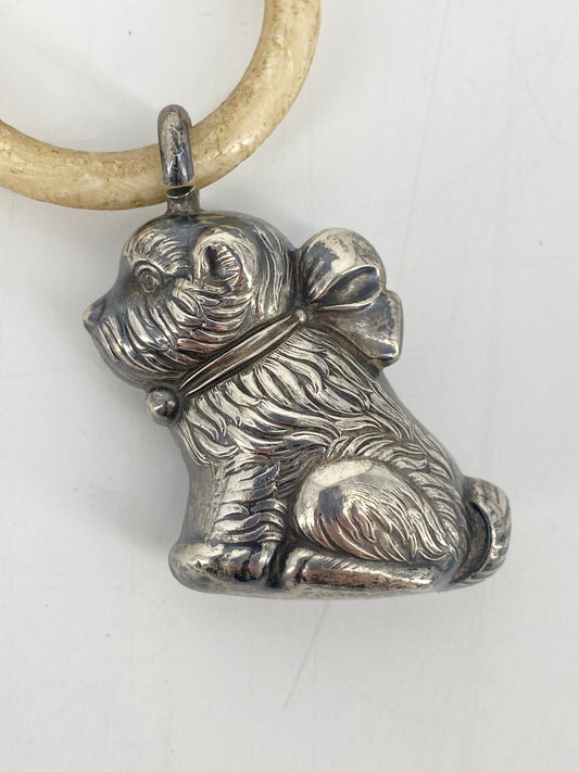 Babyrassel oder Puppenzubehör mit Hunde-Anhänger aus 835er Silber
