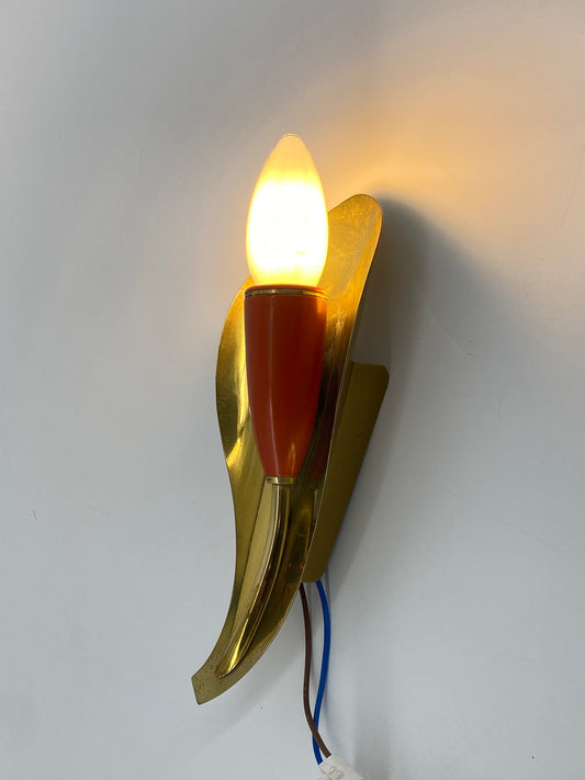 Blattförmige Wandlampe im Stil von Stilnovo aus Messing, 50/60er