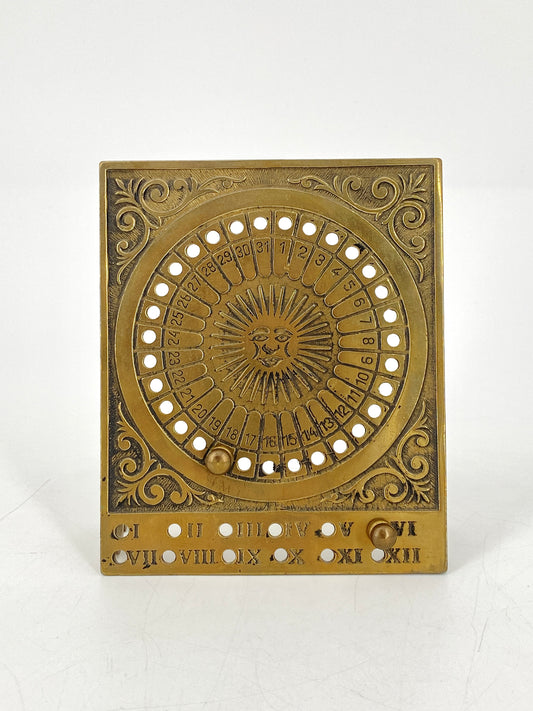 Ewiger Kalender mit Sonnenmotiv aus Messing
