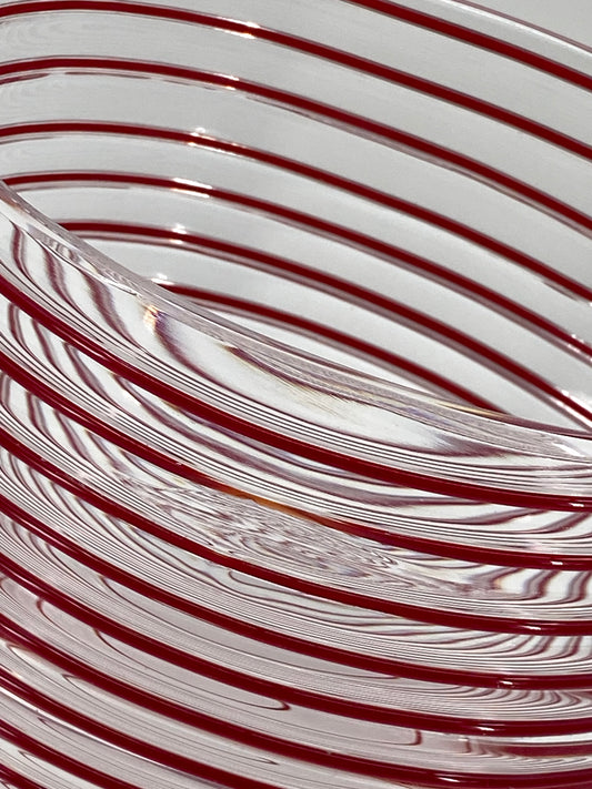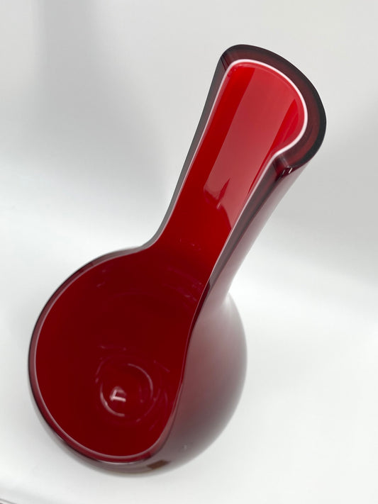 Vase oder Kerzenhalter aus rotem und transparentem Muranoglas, kelchförmig, handgefertigt