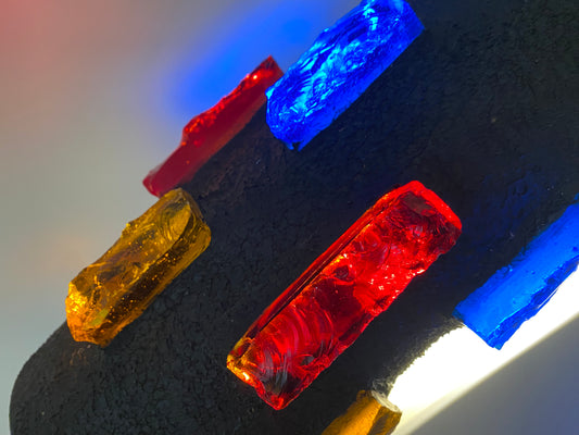 Wandkonsole mit Schublade von Schöninger Glas in Blau und Grün, um 1970