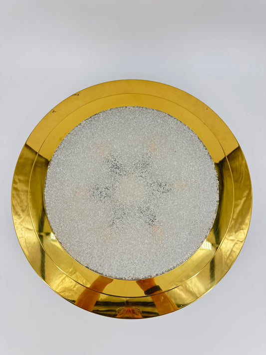 XXL Deckenlampe aus Messing und Eisglas um 1960