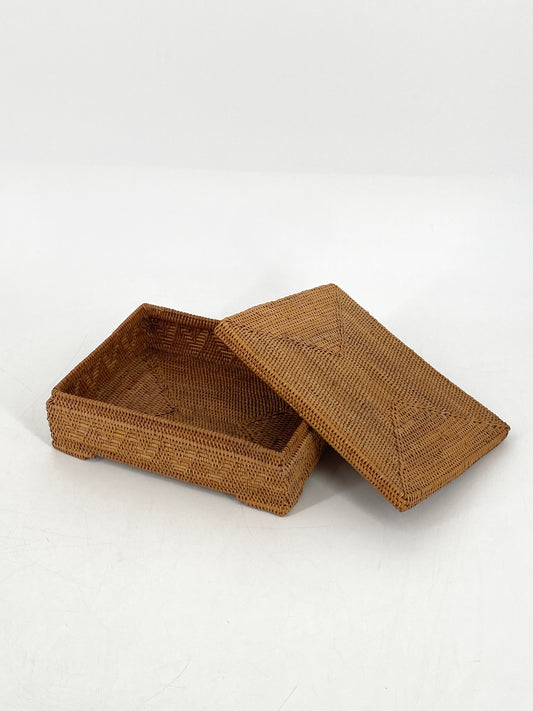 Handgewebte Aufbewahrungsbox aus Rattan mit feinem Dreiecks-Muster