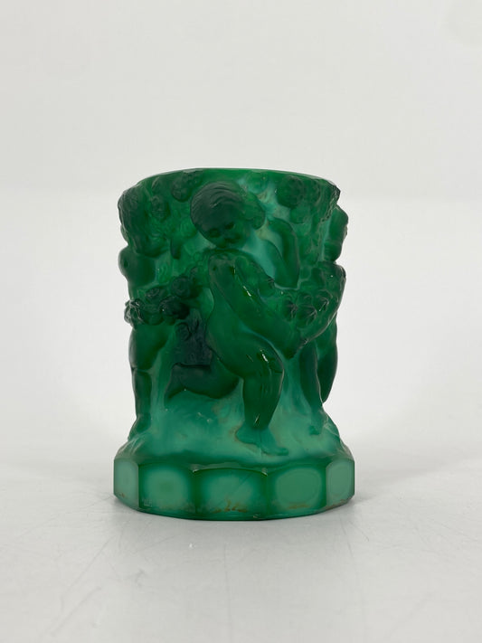 Kleine Blumenvase von Hoffmann & Schlevogt aus grünem Malachitglas
