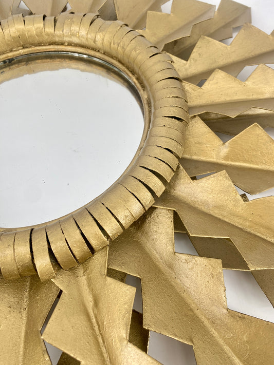 Runder Sonnenspiegel aus Metall mit gezackten Strahlen