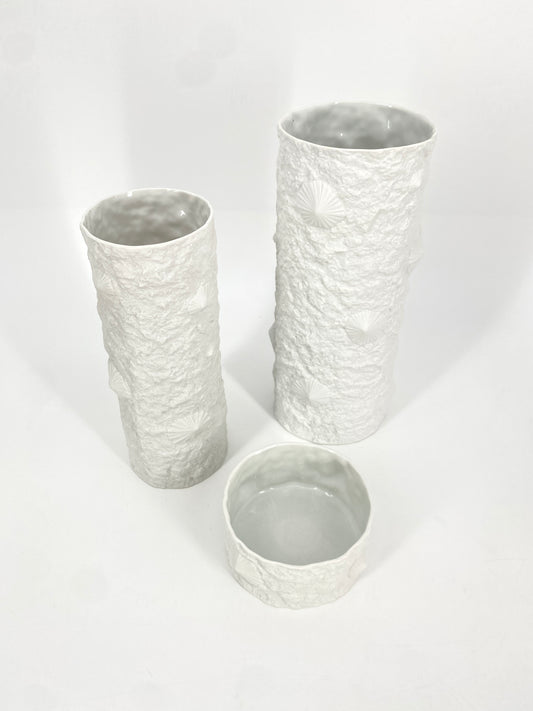 Porzellan Vasen Set mit Muschel Relief von Heinrich Fuchs für Hutschenreuther, Deutschland 1970er