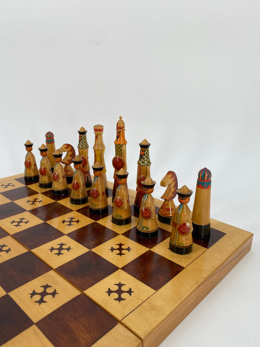 Handbemaltes Schachspiel, Sowjet Union Kirgistan 1960er