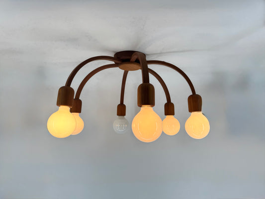 6-flammige Deckenlampe von DOMUS aus massivem Teakholz, Dänemark um 1960/1970