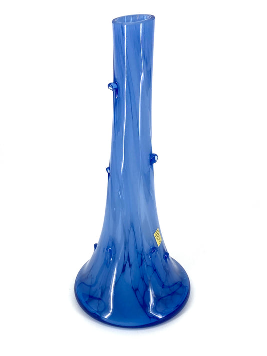 Große Glasvase mit weißem Marmormuster im Glas, Handarbeit von J. Bencal, Poland 60/70er