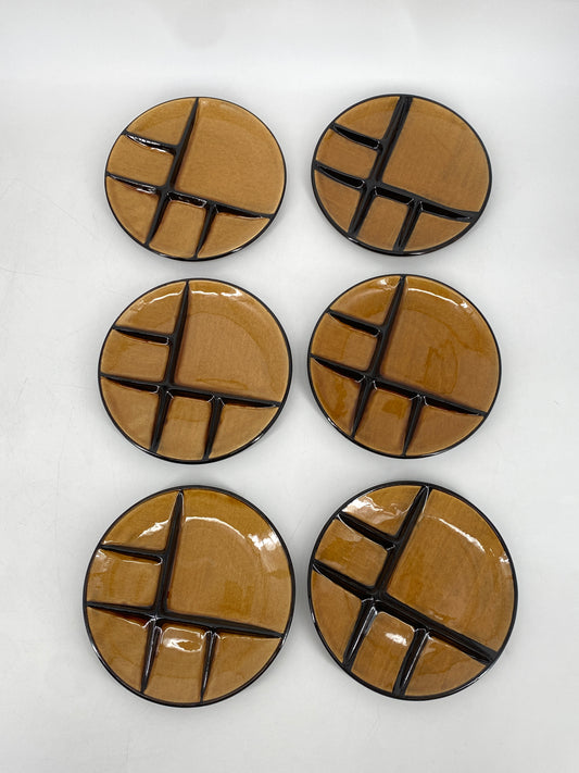 6x Keramik Fondueteller von Adolf Burkart, Schweiz 70er