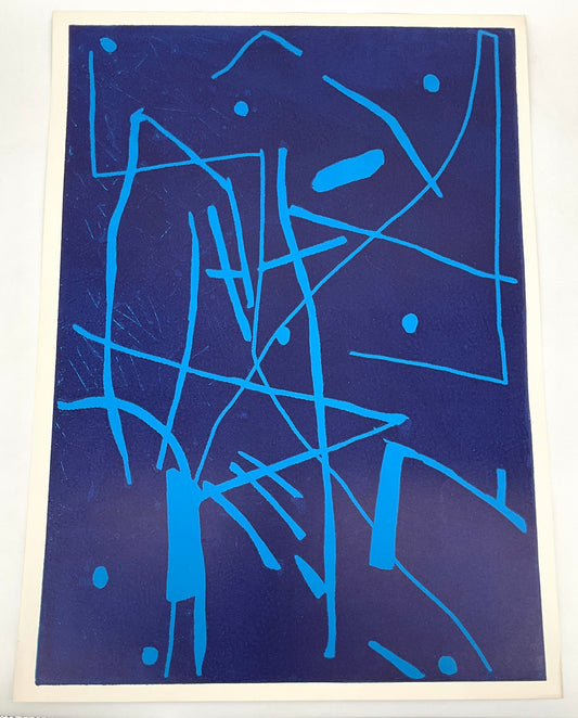 Blauer Farbholzschnitt "55 B" von Pidder Auberger für Griffelkunst, 1987