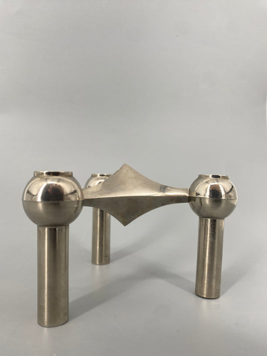 Postmoderner Kerzenhalter aus vernickeltem Metall