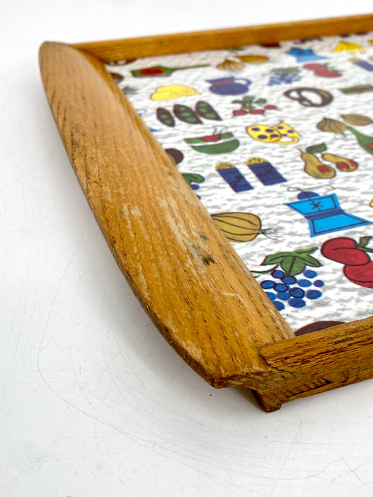 Servier- oder Küchentablett mit Holzgestell, 60er
