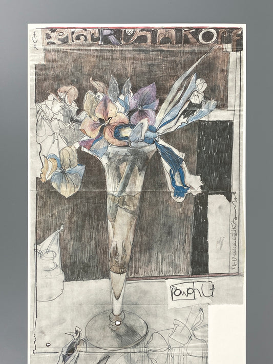 Signierter Offsetdruck "Stilleben in Blau" von Horst Janssen (1929–1995)
