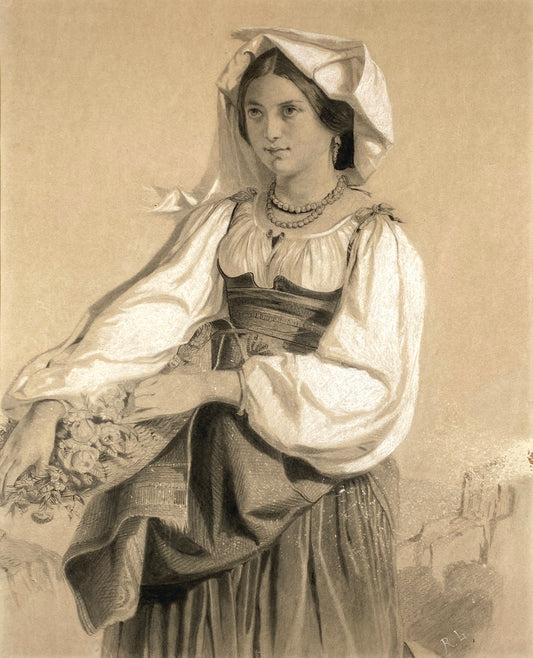 Antike Kreidezeichnung nach dem Gemälde von Félix-Joseph Barrias, monogrammiert