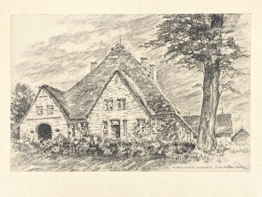 Bleistiftzeichnung "Hauberg Fedders, Koldenbüttel" von Hans Philippi, 1946