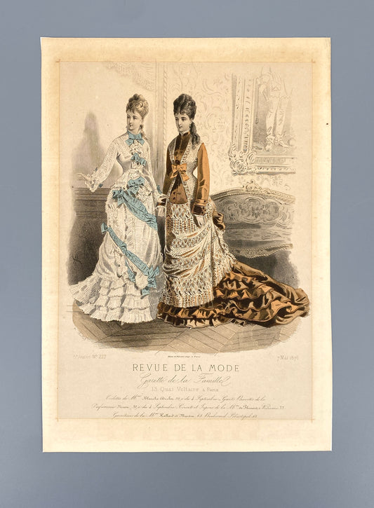Handkolorierte Modeillustrationen aus Frankreich, 3 Stk., 1866/1876
