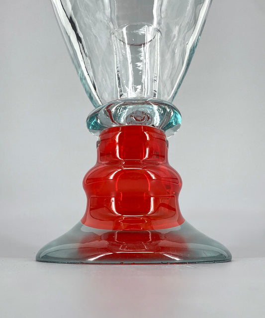 Vase oder Kerzenhalter aus rotem und transparentem Muranoglas, kelchförmig, handgefertigt