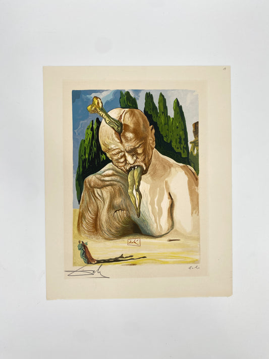 Holzschnitt "Minos Totenrichter" von Salvador Dali ein Original mit Signatur, 1960er