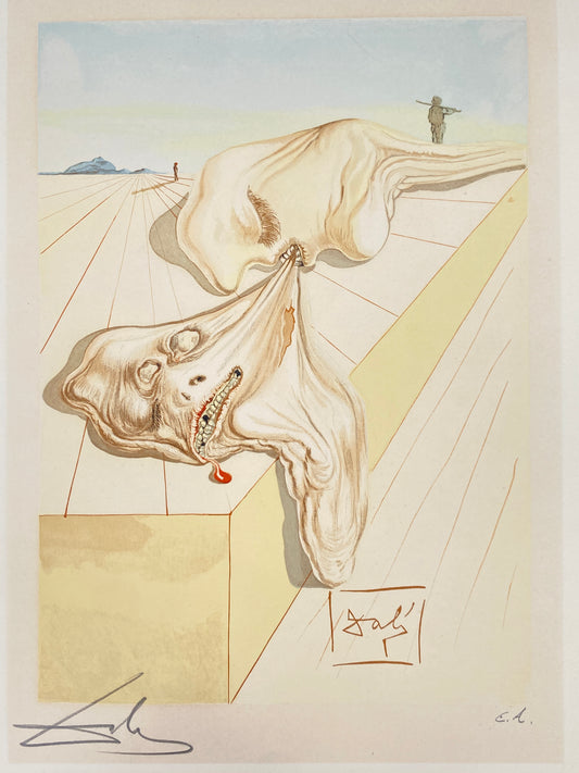 Holzschnitt „The Men Who Eat Each Other“ von Salvador Dali ein Original mit Signatur, 1960er