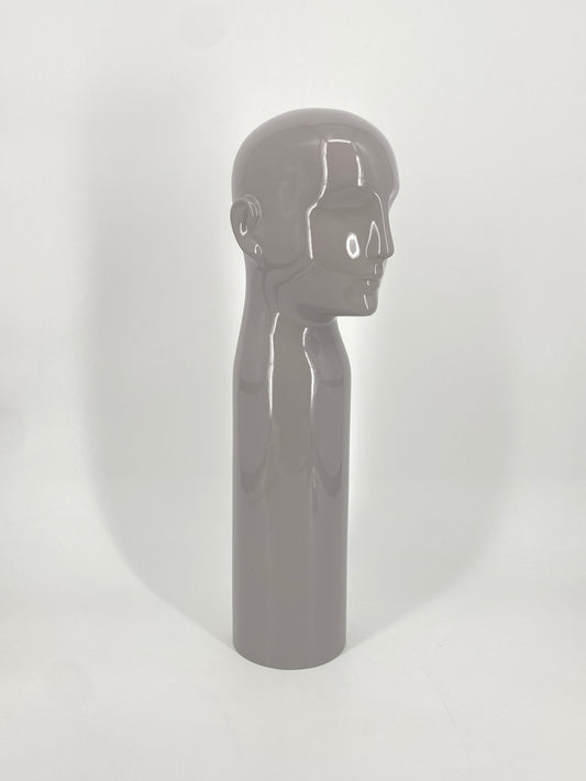 Skulptur in Form eines Kopfes aus grauem Kunststoff