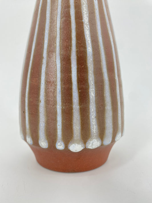 Kleine, gestreifte Studiokeramik Vase in Terracotta und Weiß