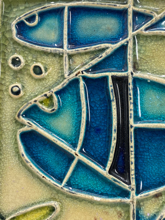 Keramikrelief mit Fischdesign von Karl Jüttner, Künstler DDR 1921-2006