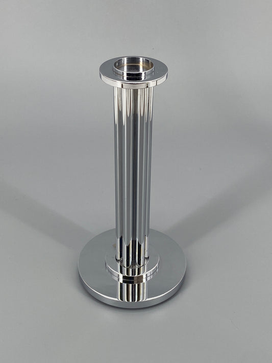 Postmoderner Kerzenhalter aus vernickeltem Metall
