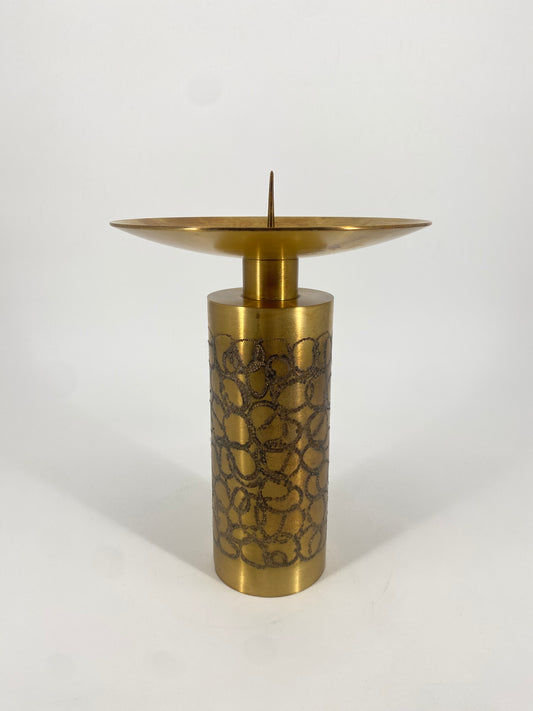 Mid Century Kerzenhalter mit Schlagmuster aus Messing, Deutschland