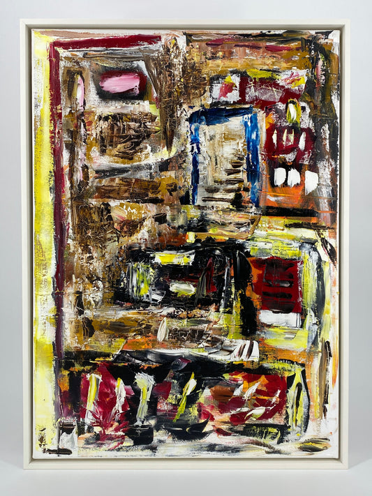 Abstraktes Acrylgemälde von Helmut Riegel, gerahmt