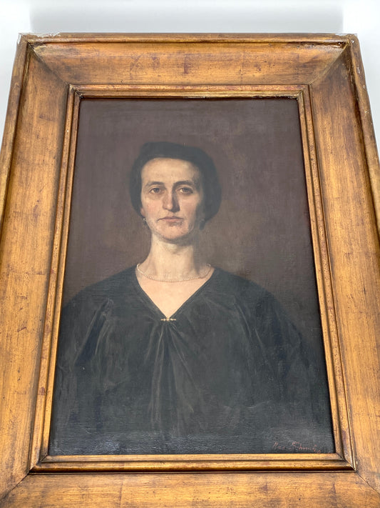 Damenporträt-Ölgemälde von Max Schmidt in originalem Holzrahmen, 1. Hälfte des 20. Jahrhunderts
