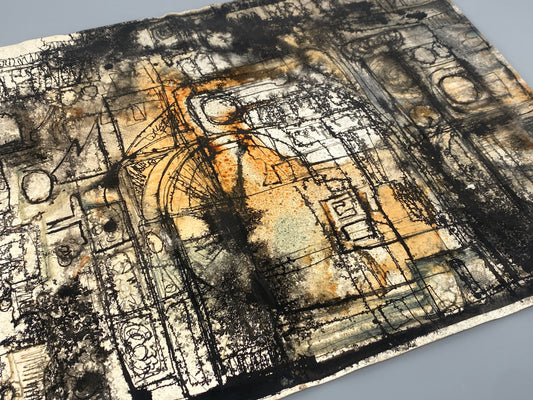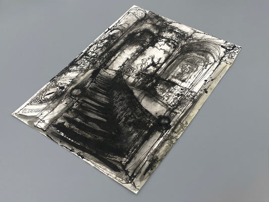 Architektonisches Tuschgemälde von Charlotte Heister (1921–1998), 1973