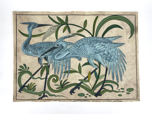 Gemälde "Graureiher am Ufer" auf Leinenstoff