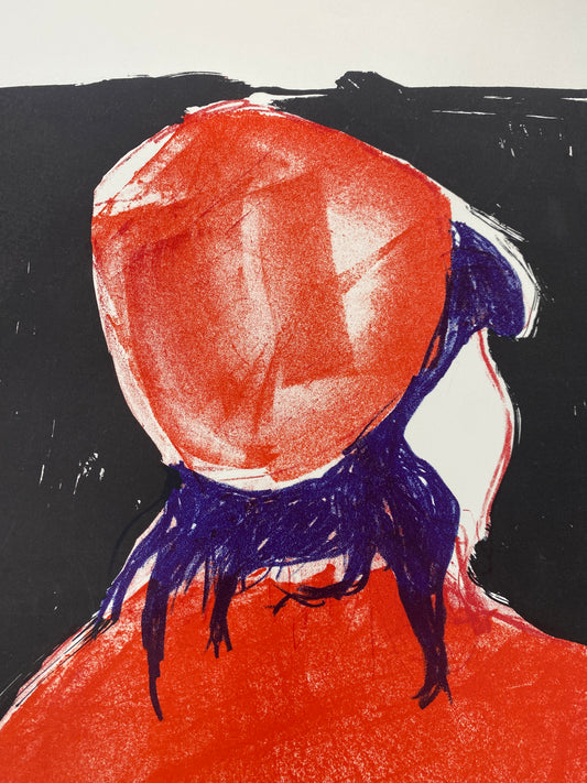 Druckgrafik Frau in rotem Kleid des deutsch-israelischen Malers Jacob Pins, 1985
