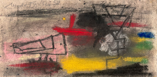 Ölkreidegemälde „Abstrakte Komposition“ von Arnold Fiedler, 1956/1958
