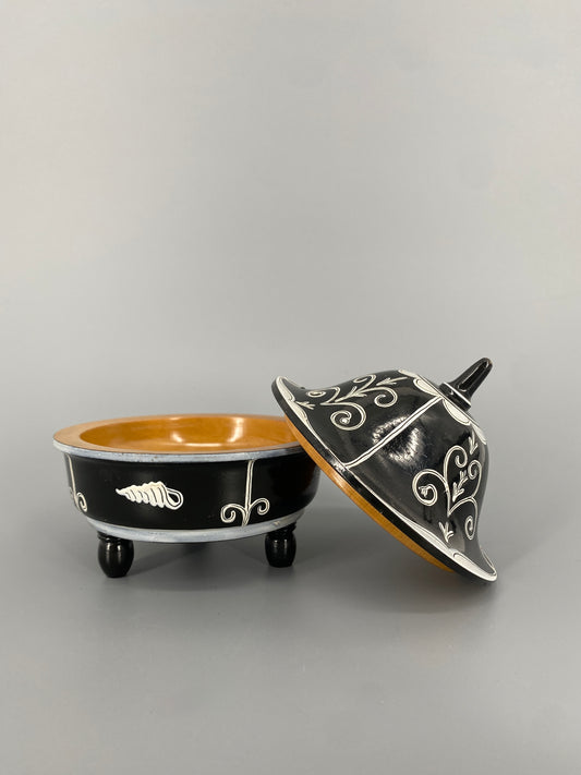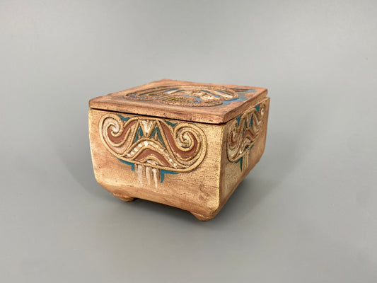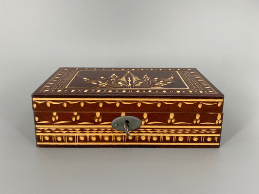 Rustikales Holzkästchen mit Schnitzerein, 1900-1950
