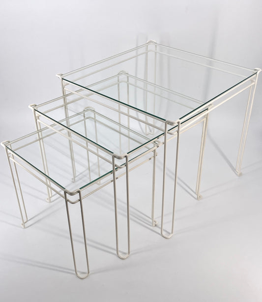 Satztische aus Metall in weiß im Stil der Isocele Tische von Max Sauze, 1970er