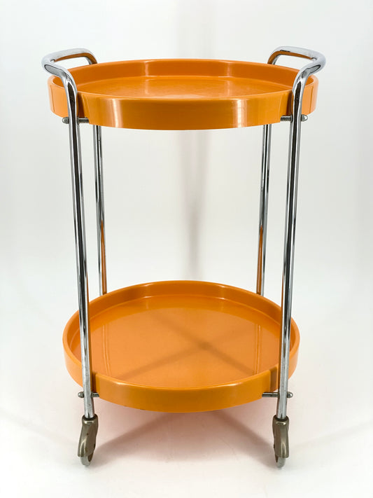 Servierwagen orange mit herausnehmbaren Tabletts, ikonisches Design, 1970er