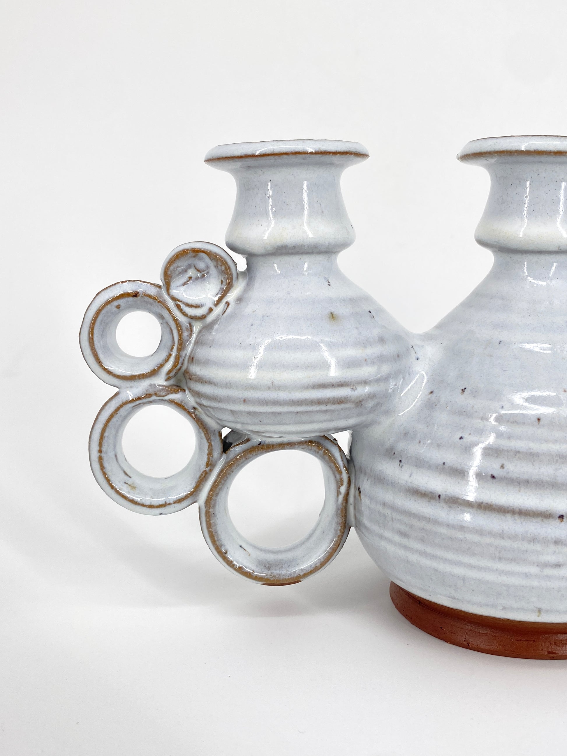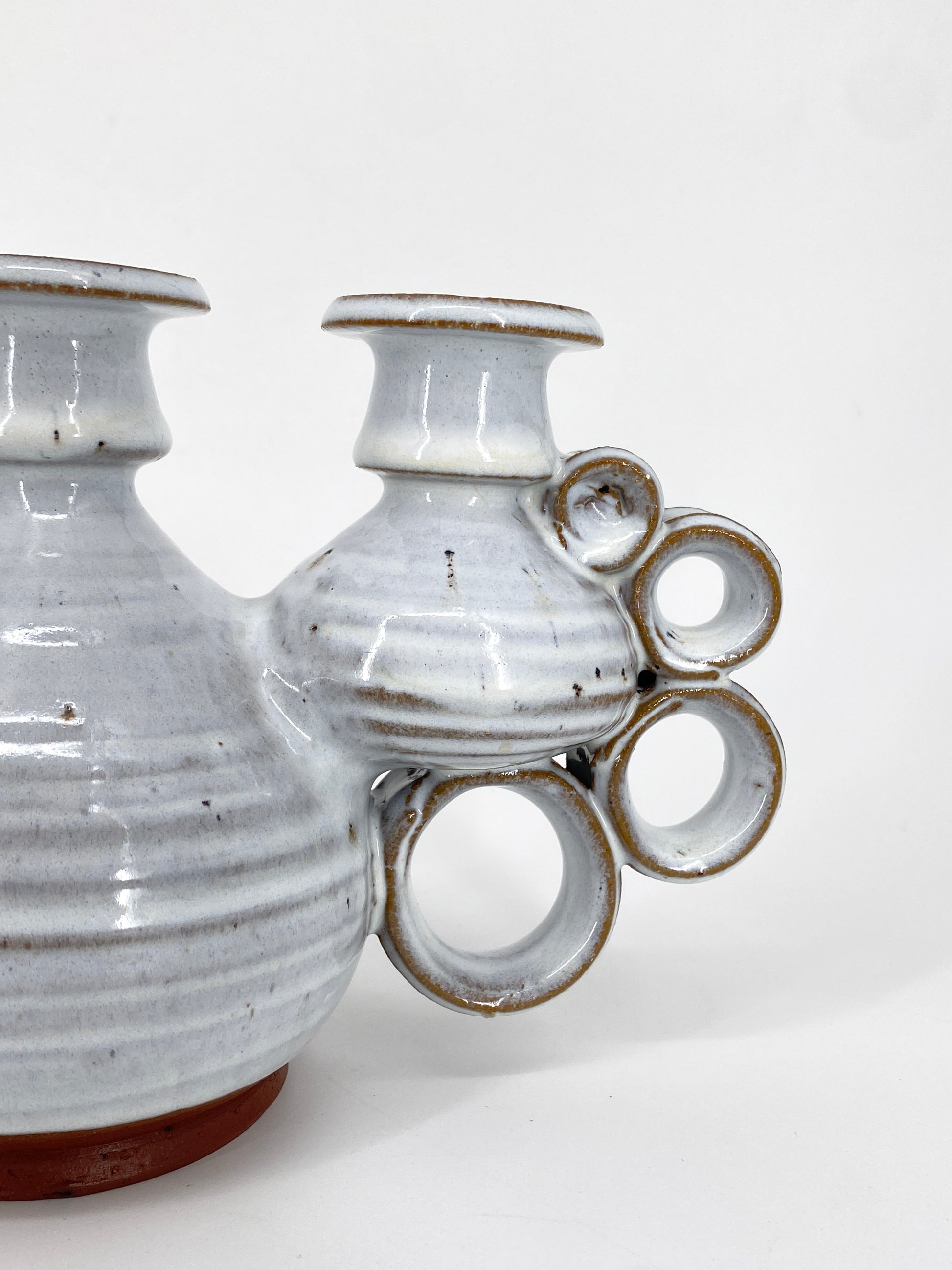 * bauchiger Mittelteil mit zwei Armen und je vier Ringen als Dekoration