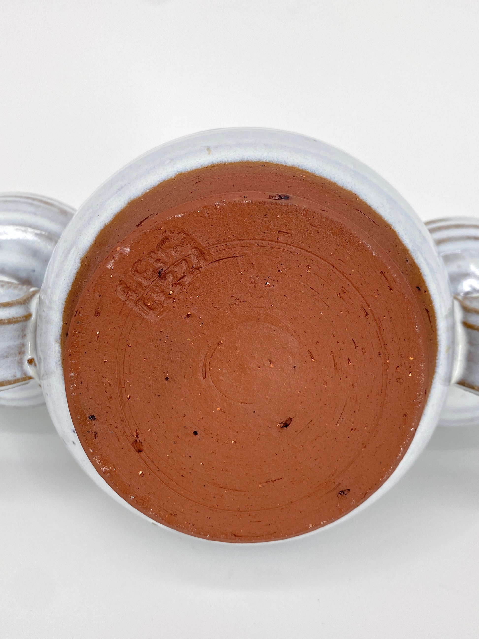 * teils durchscheinende, weiße Glasur mit dunklen Sprenkeln