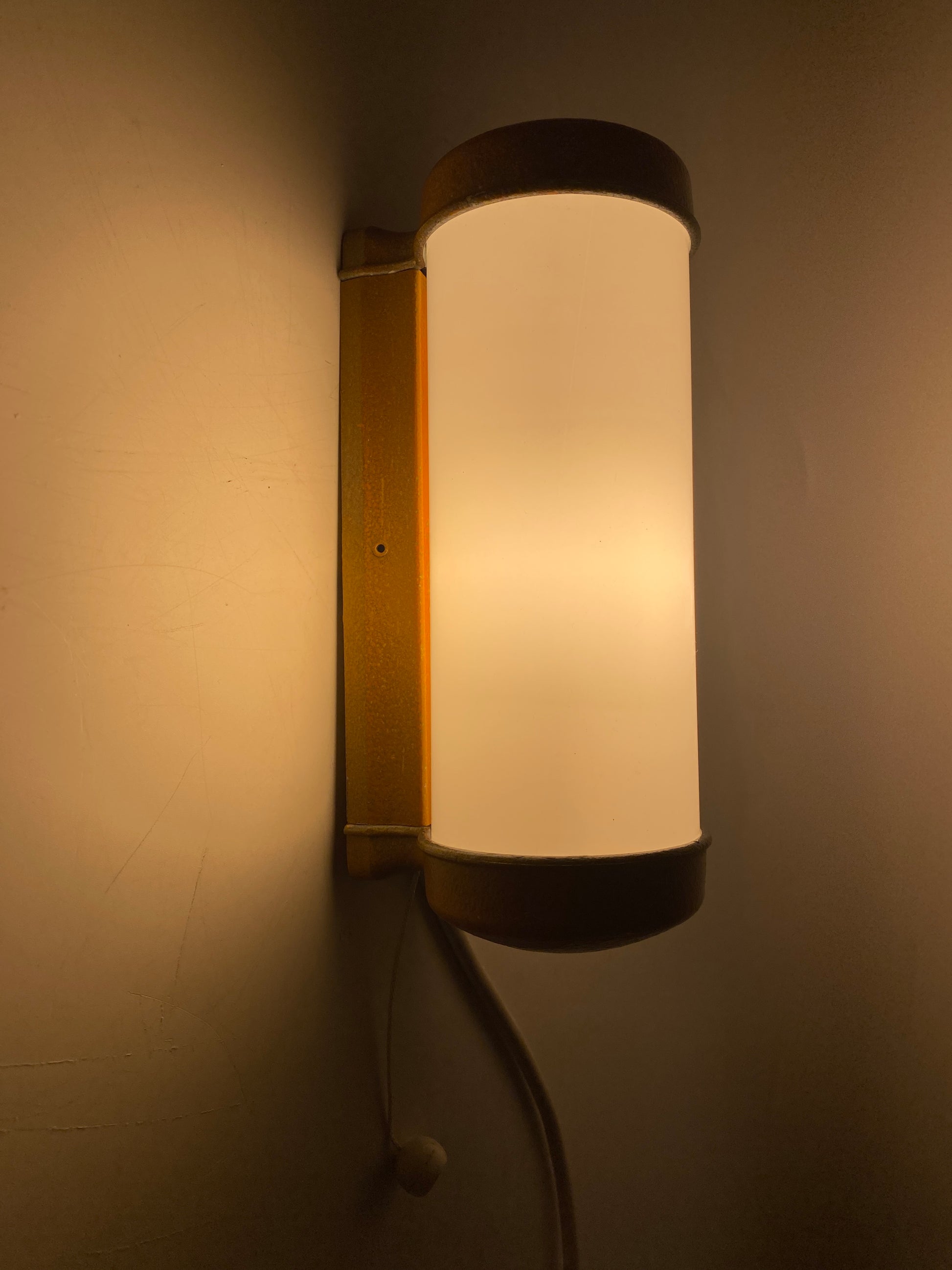 * 4x WANDLAMPE INDUSTRIE DESIGN ZUGSCHALTER GELB 60er 70er
