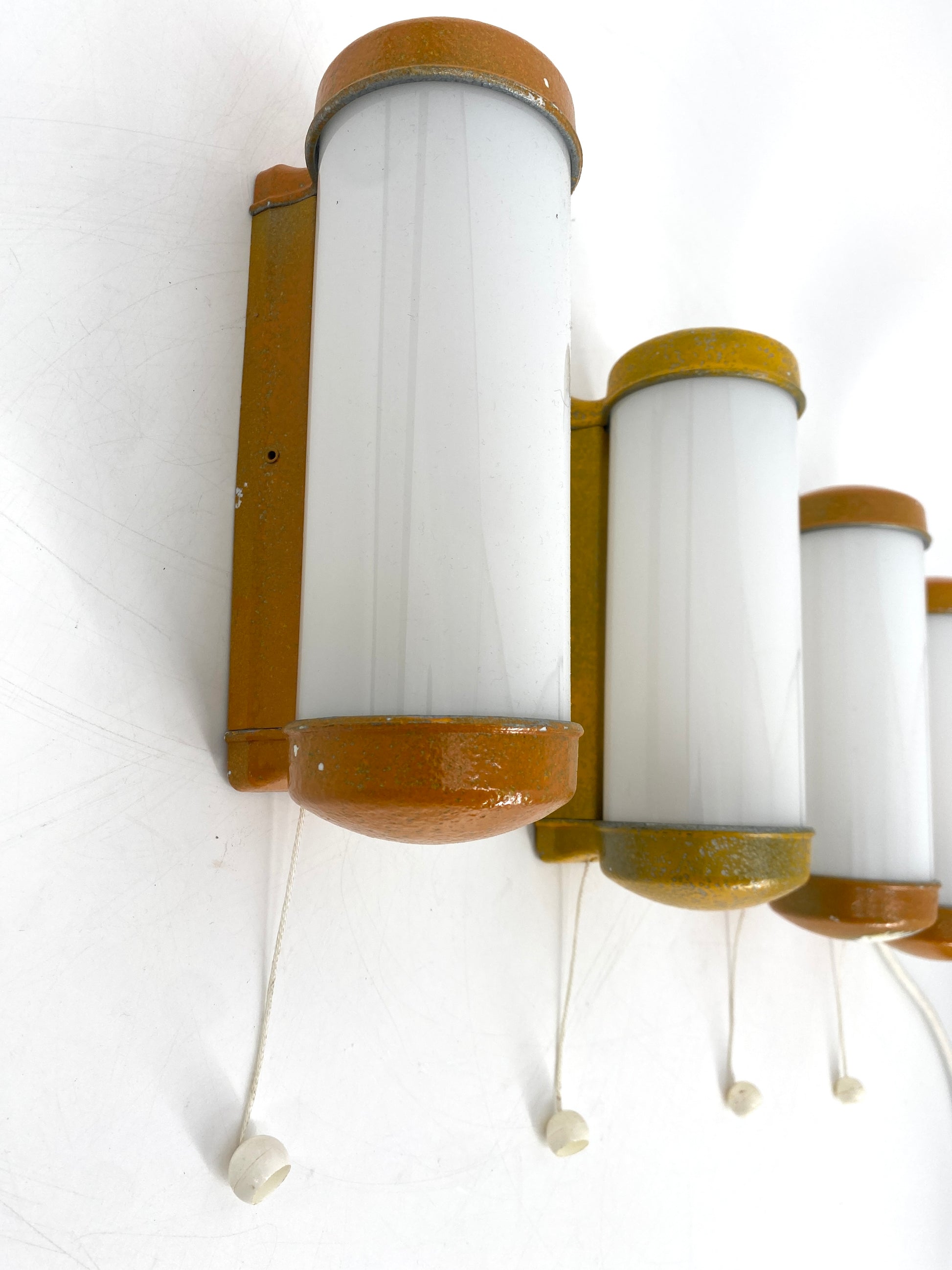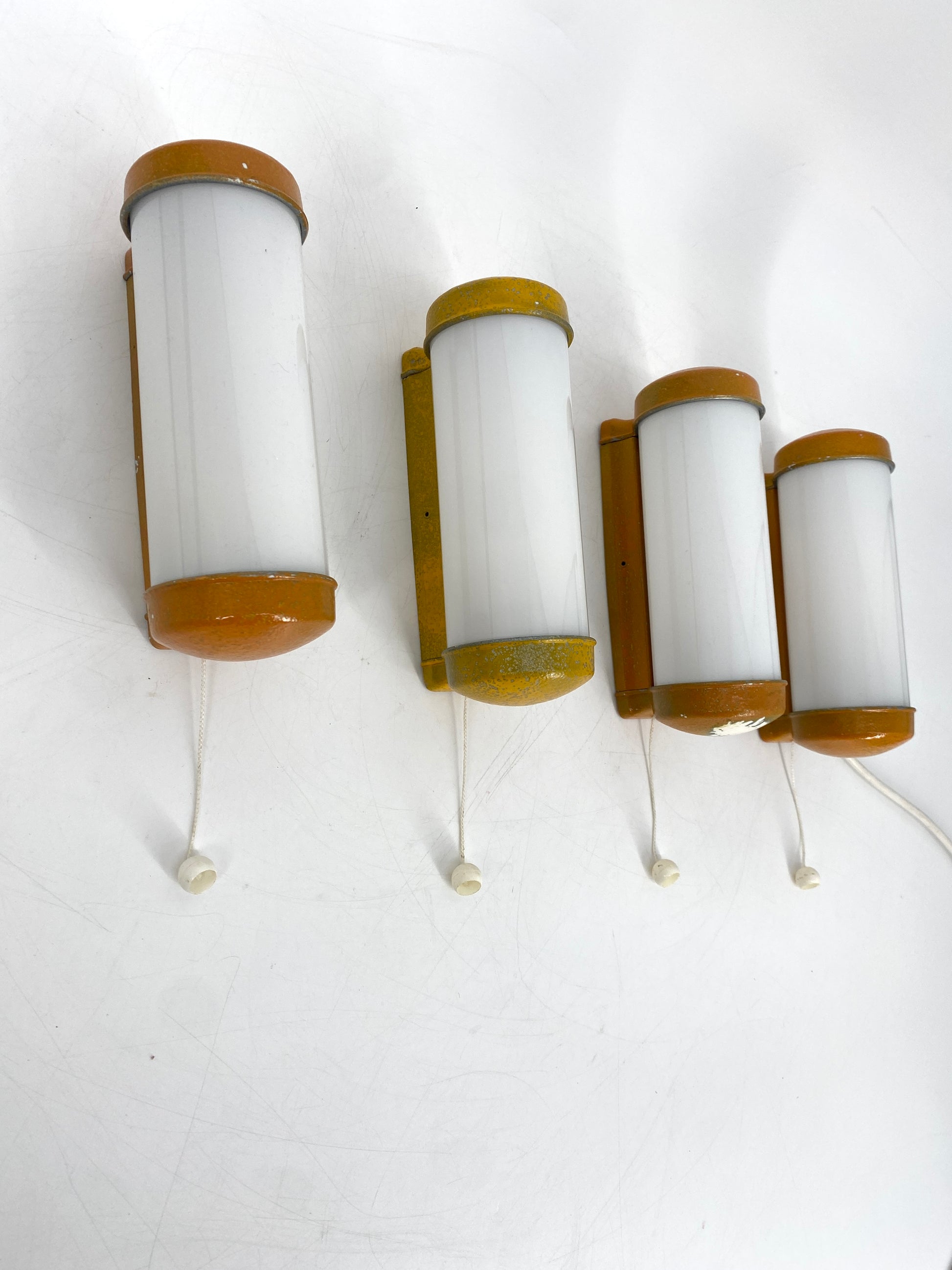 4 Wandlampen mit Zugschaltter im Industriedesign der 1960er Jahre