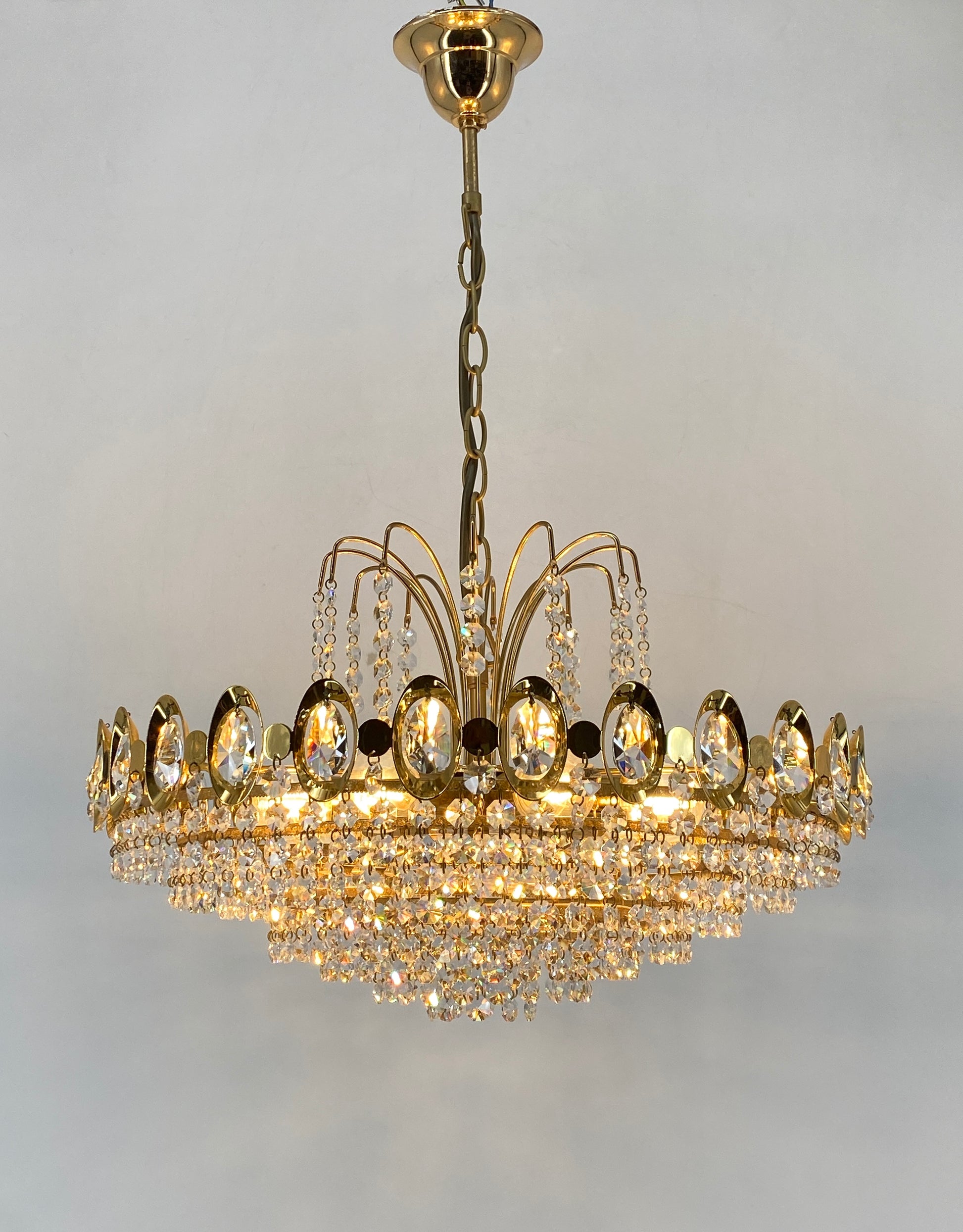 7-flammiger Kronleuchter von Preico Leuchten Leinau in Goldfarbe