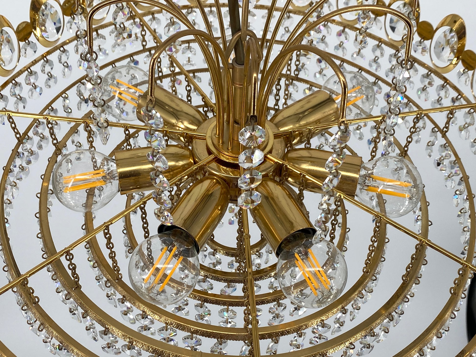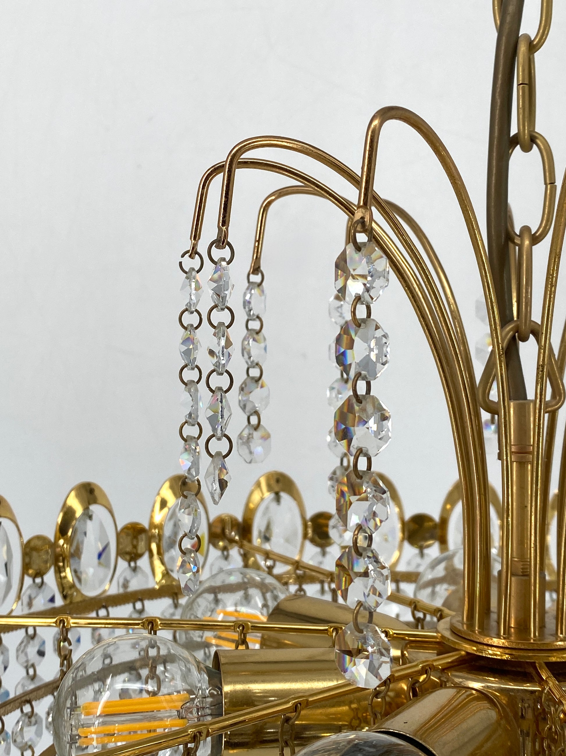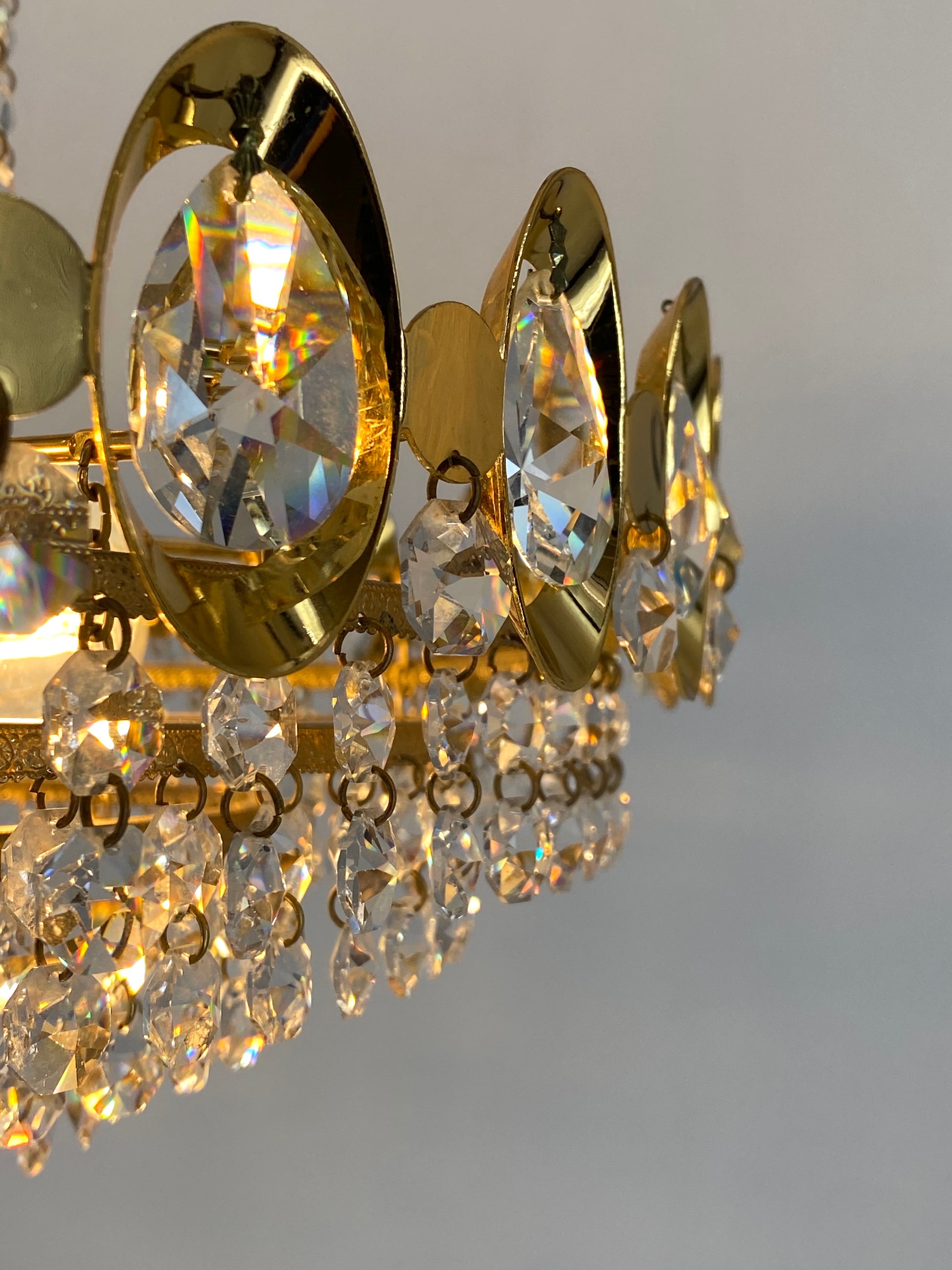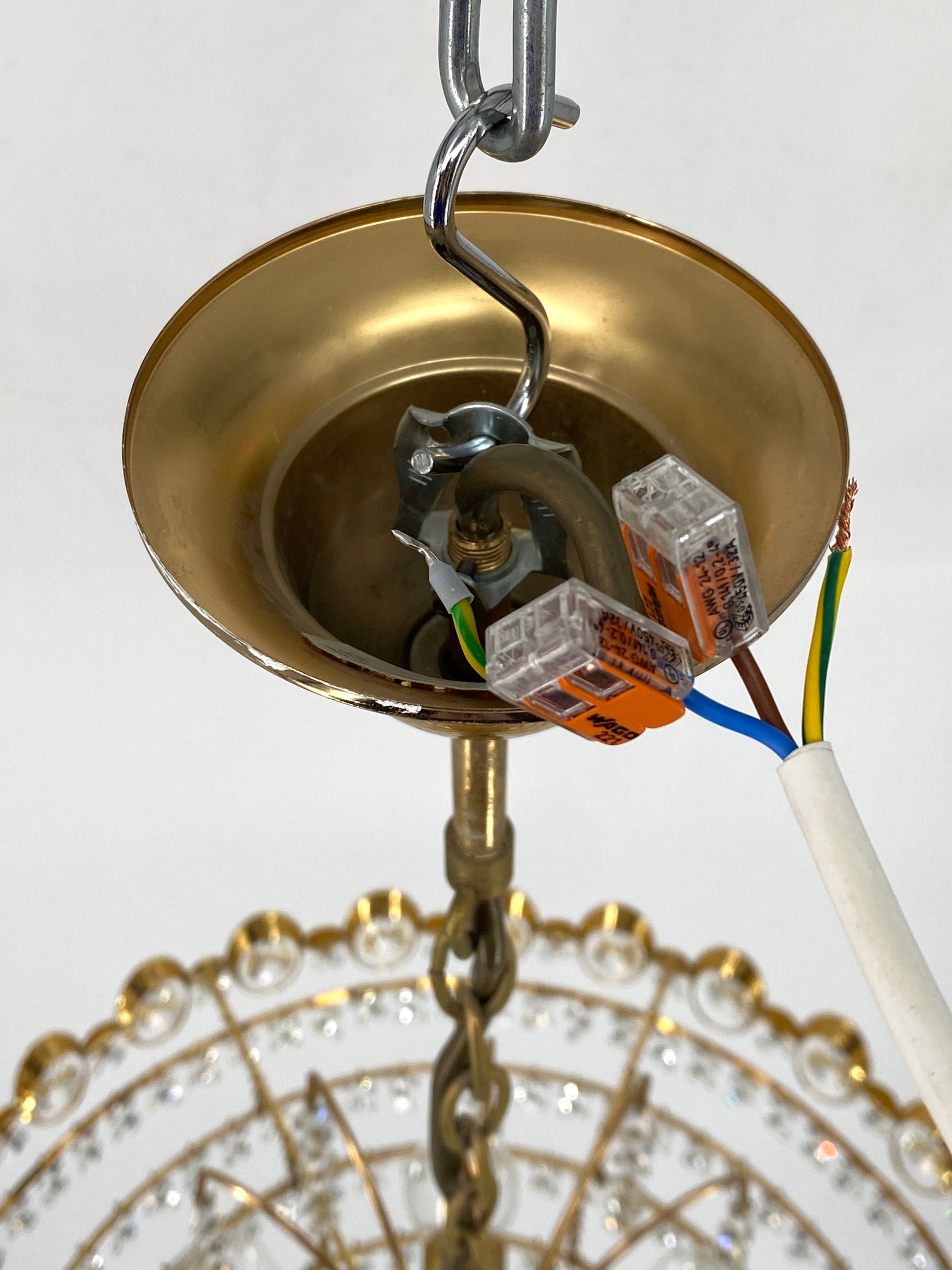 *DECKENLAMPE KRONLEUCHTER PREICO 7x E14 KRISTALLGLAS GOLDFARBE VINTAGE LEINAU