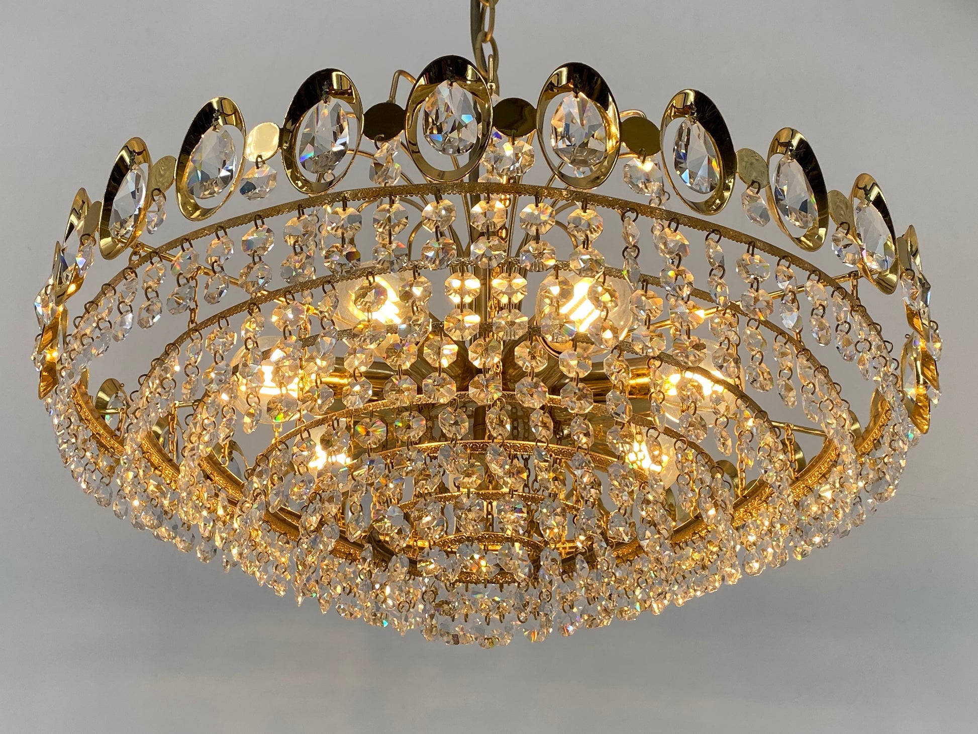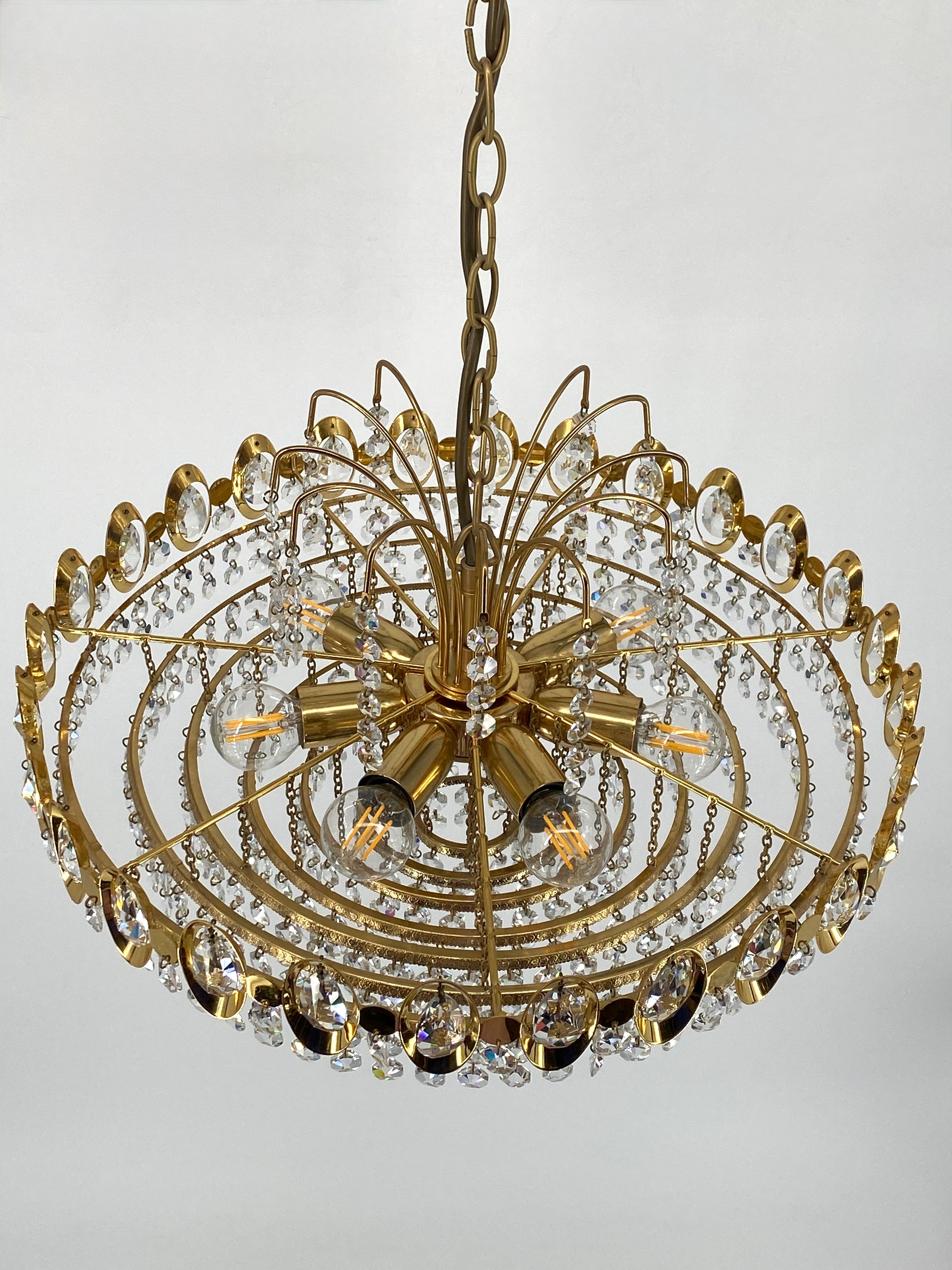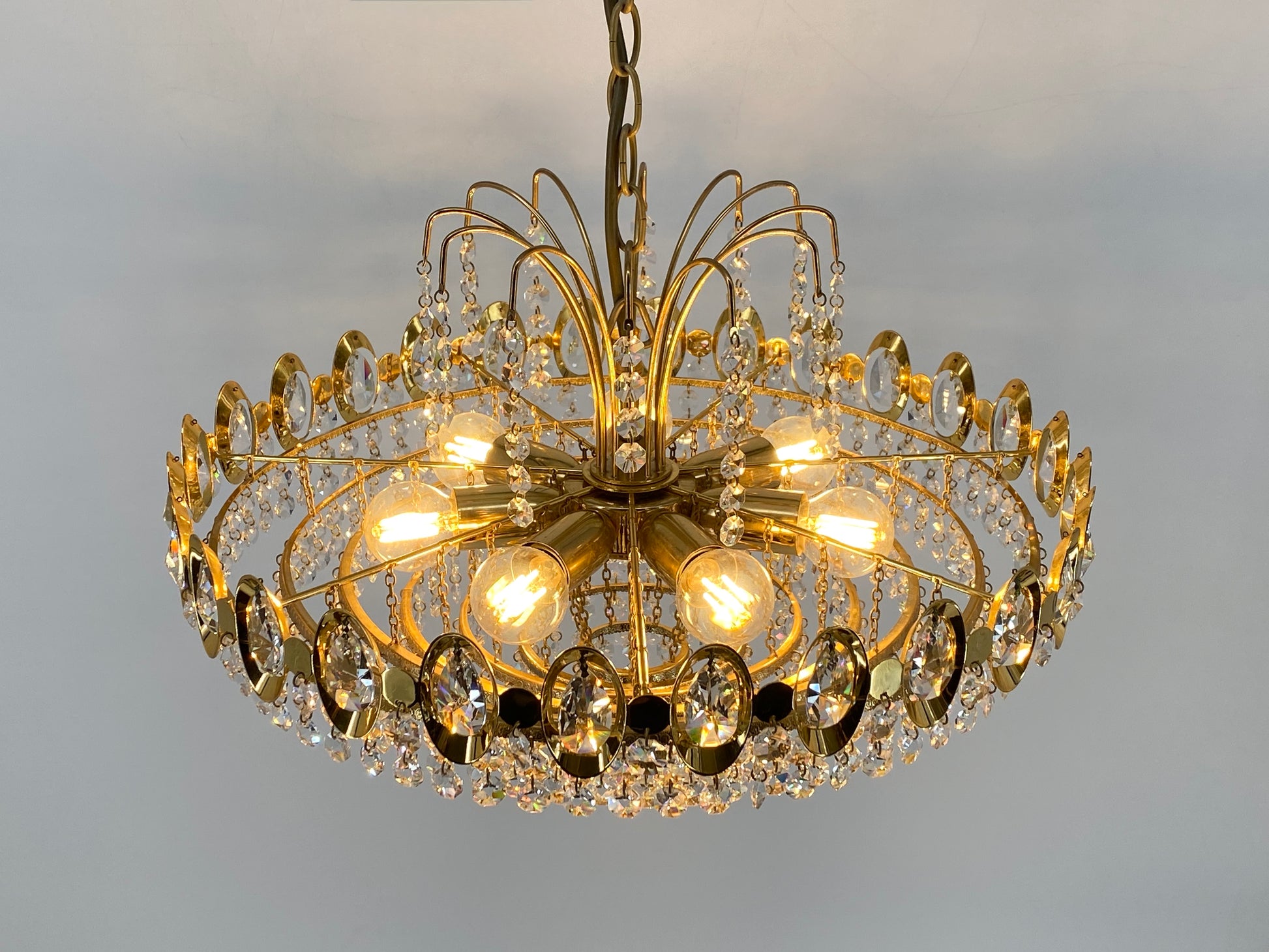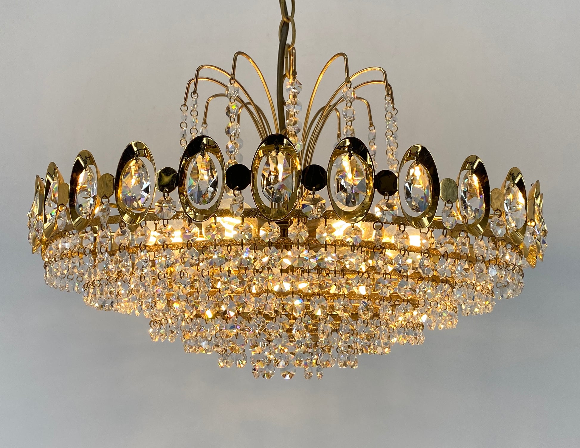 *DECKENLAMPE KRONLEUCHTER PREICO 7x E14 KRISTALLGLAS GOLDFARBE VINTAGE LEINAU