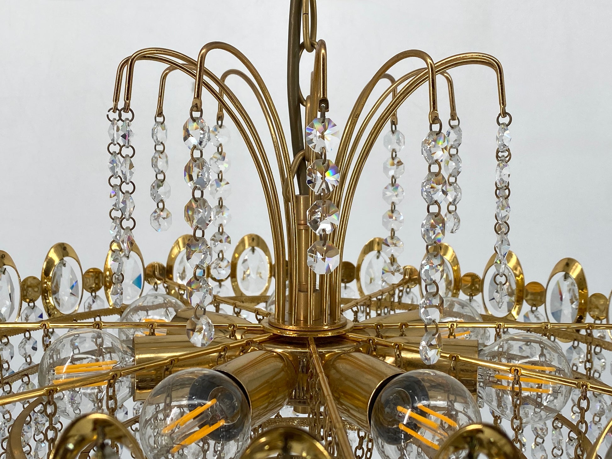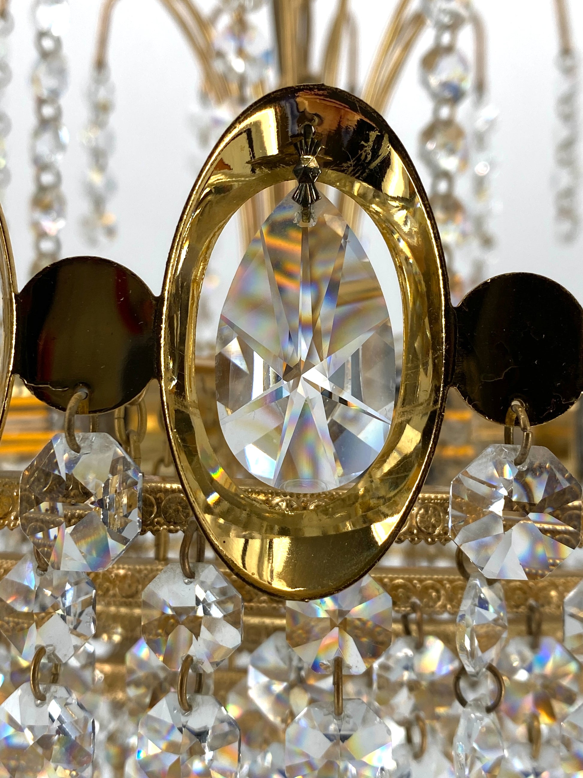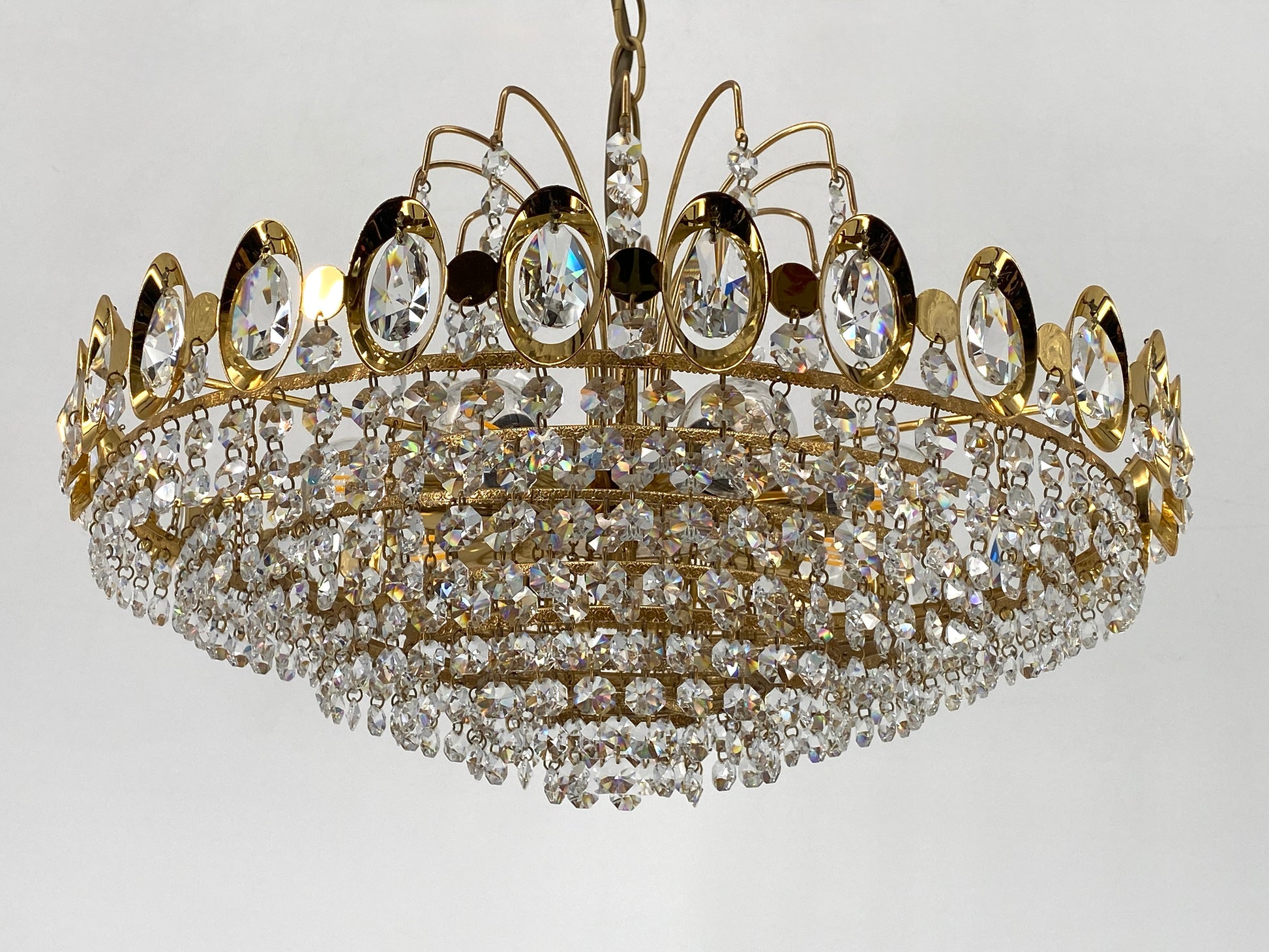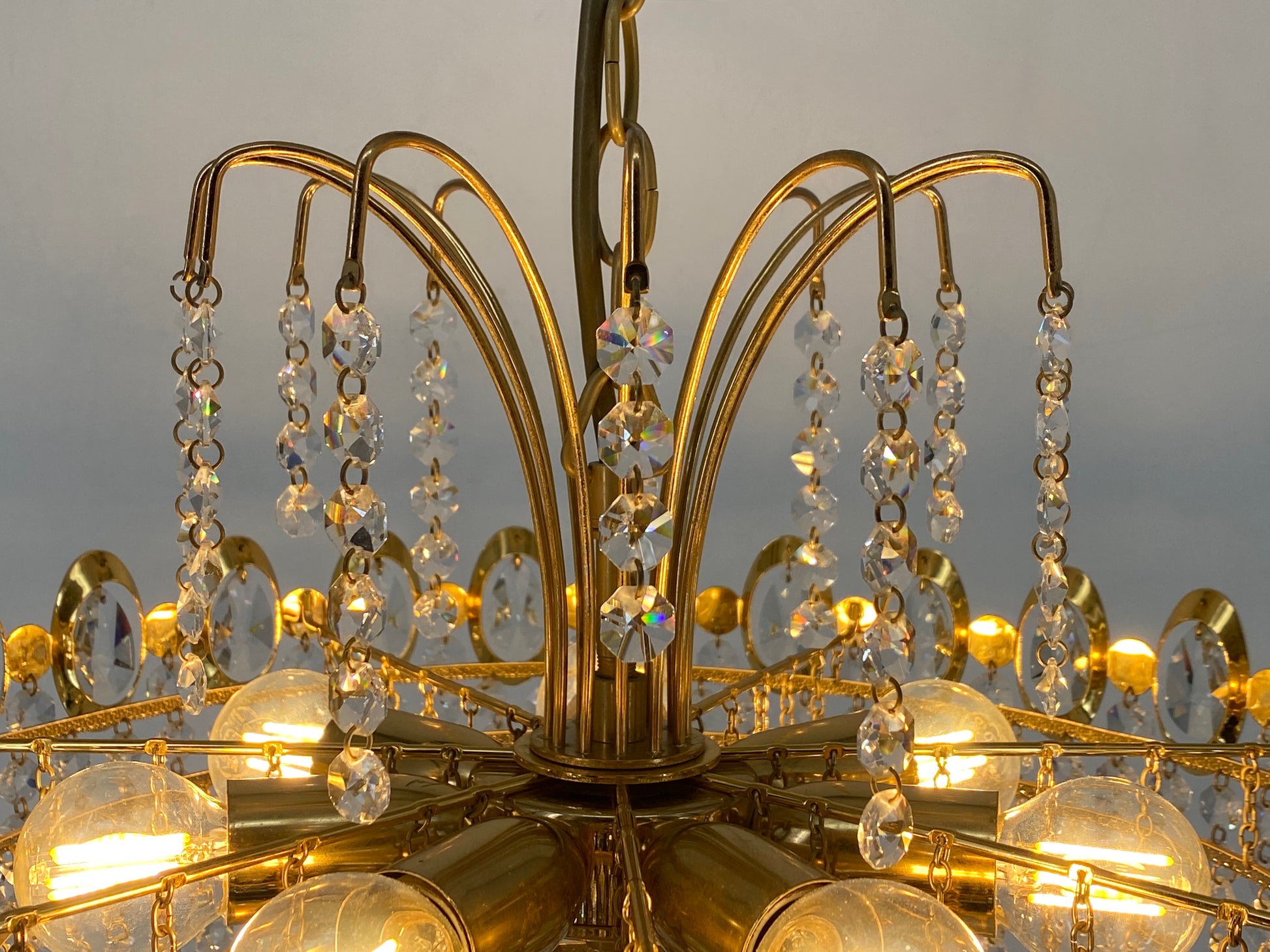 *DECKENLAMPE KRONLEUCHTER PREICO 7x E14 KRISTALLGLAS GOLDFARBE VINTAGE LEINAU