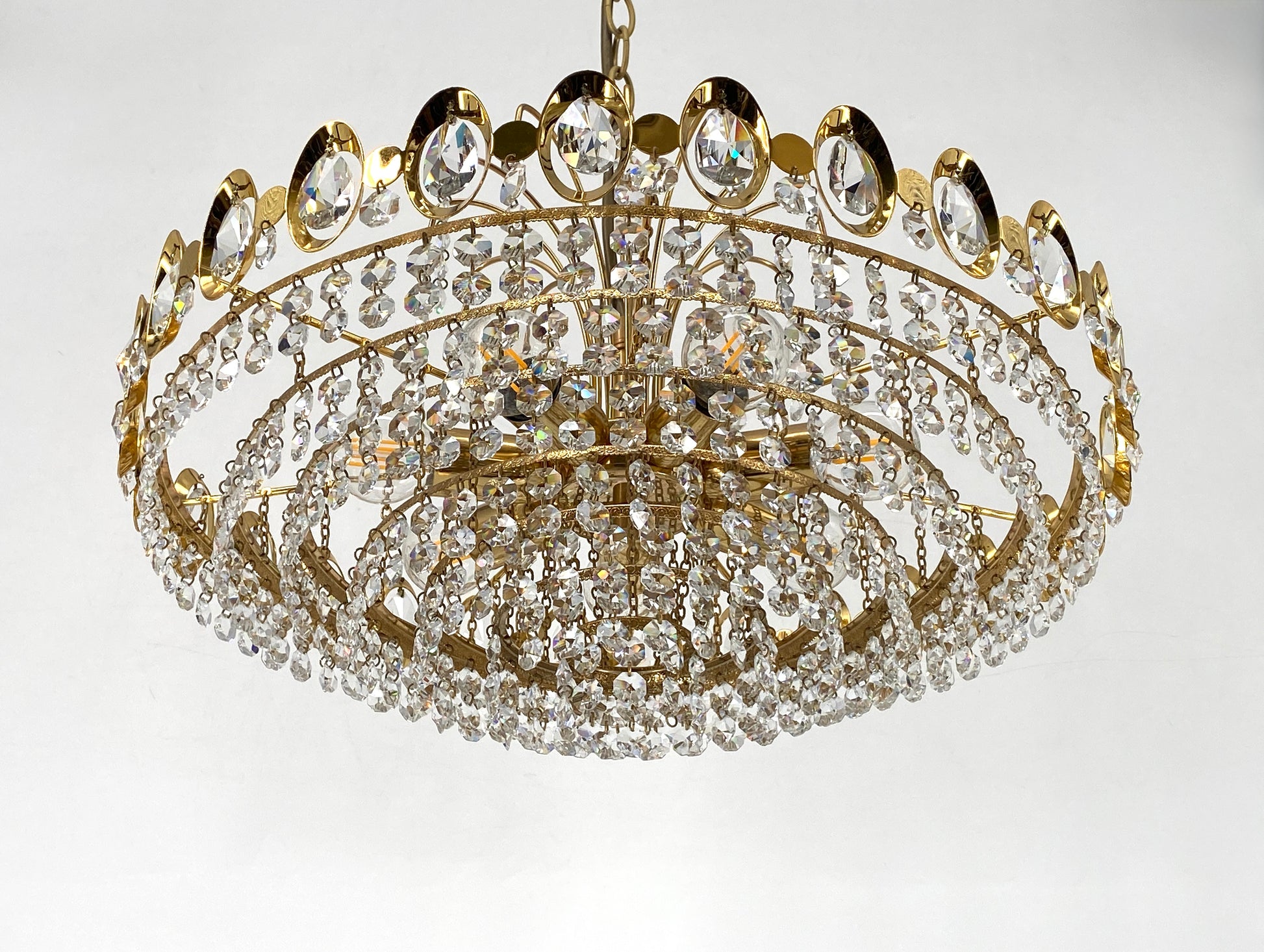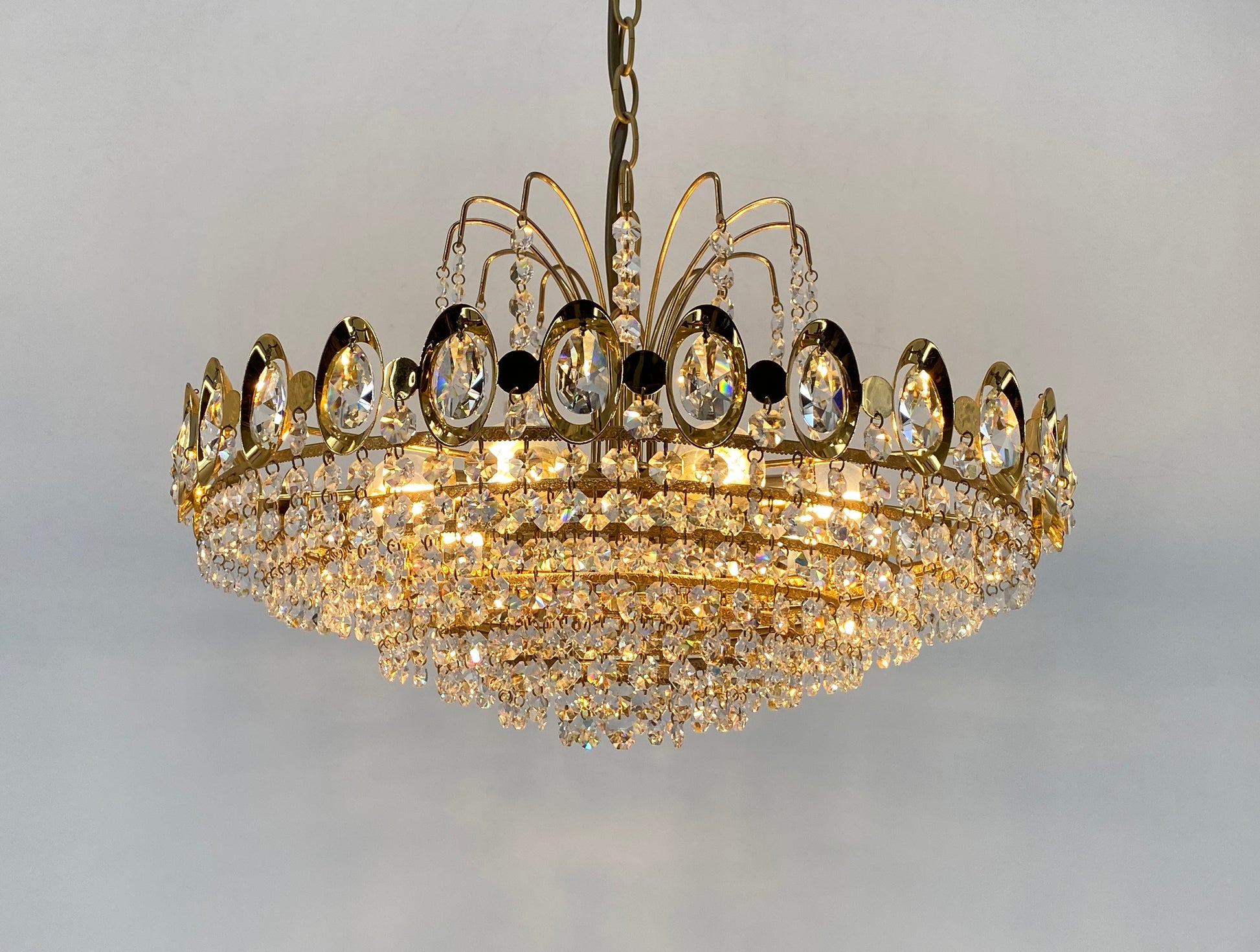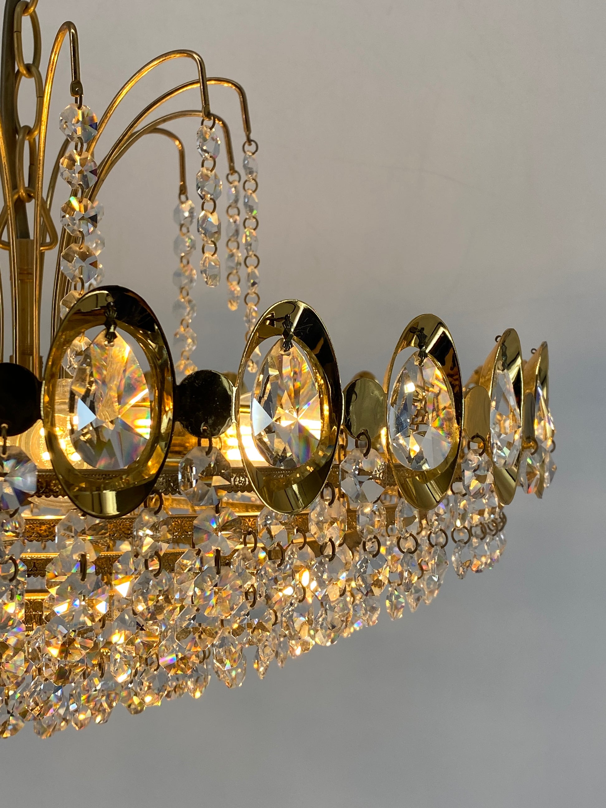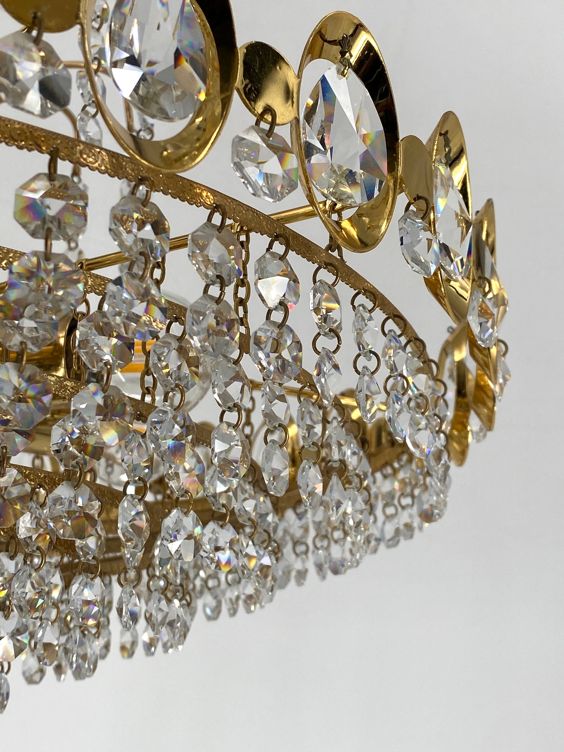 *DECKENLAMPE KRONLEUCHTER PREICO 7x E14 KRISTALLGLAS GOLDFARBE VINTAGE LEINAU
