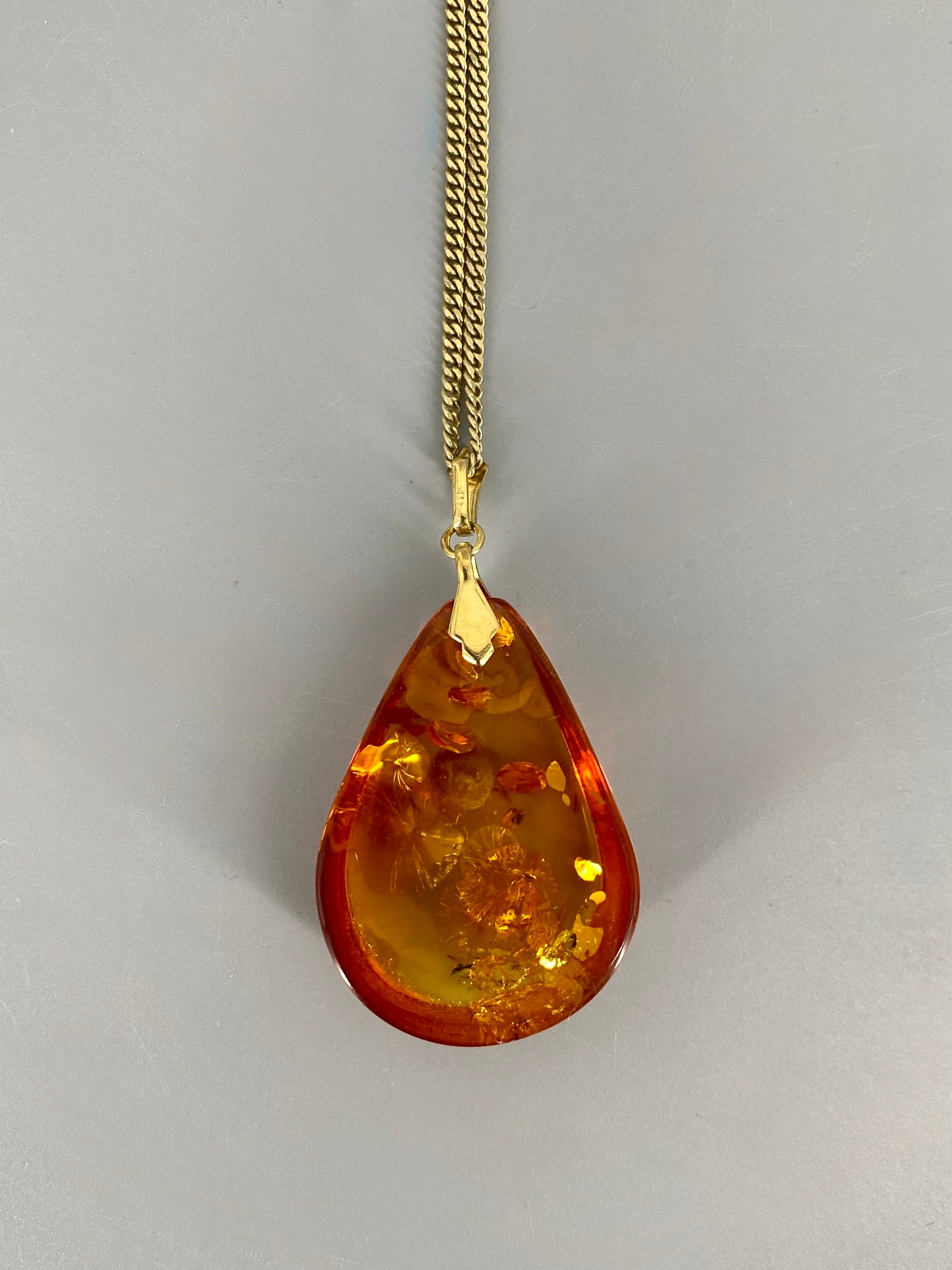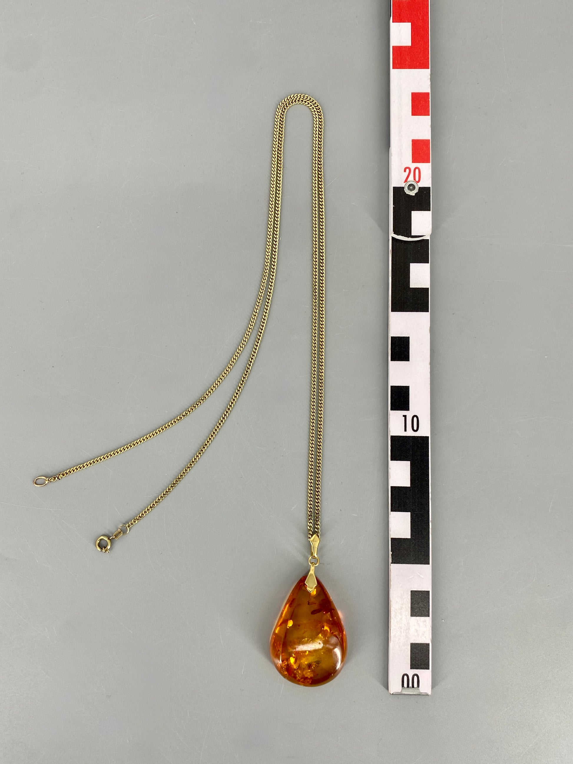 8 Karat Goldkette mit Bernsteinanhänger, Vintage
