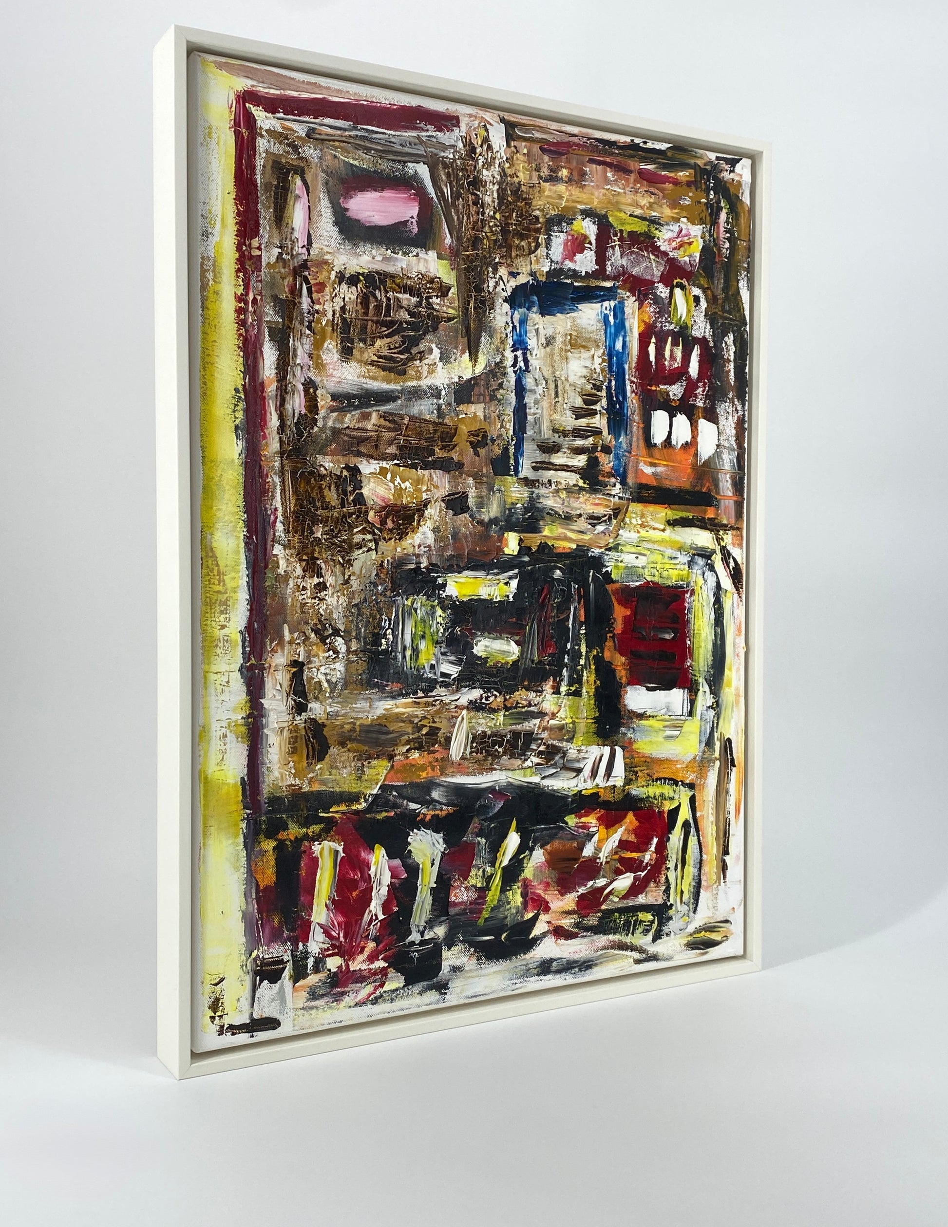 Abstraktes Acrylgemälde von Helmut Riegel, gerahmt